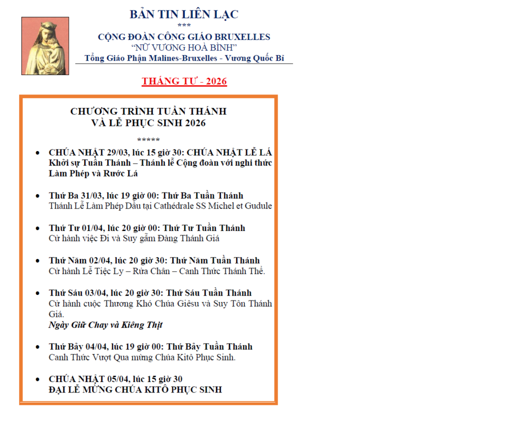 CỘNG ĐOÀN CÔNG GIÁO VIỆT NAM – BRUXELLES