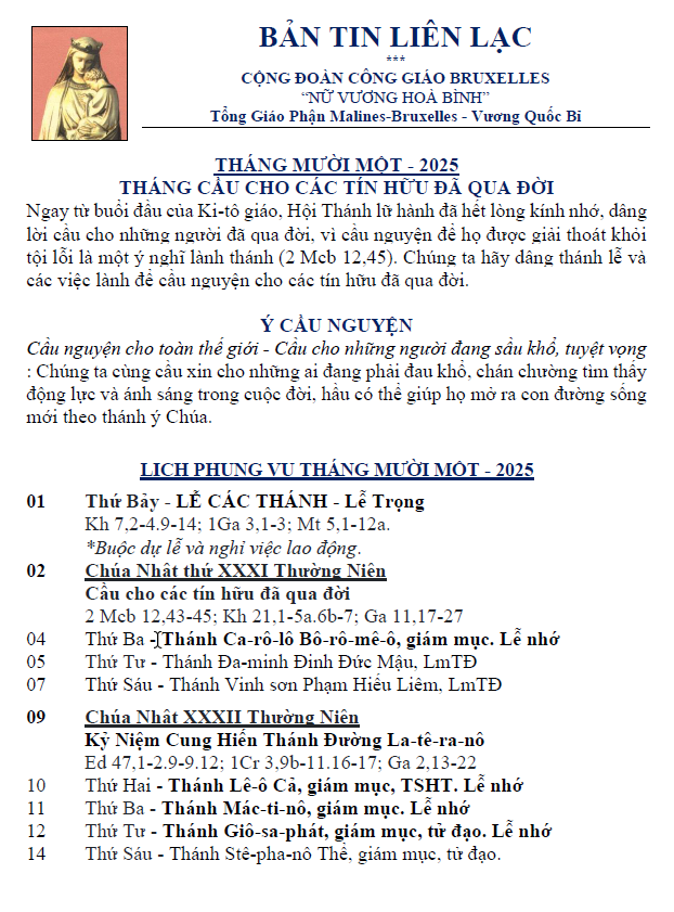 Chúa nhật 11/05/2025 : Ngày Hành Hương Thánh Mẫu Banneux năm thứ 14 toàn Cộng Đoàn